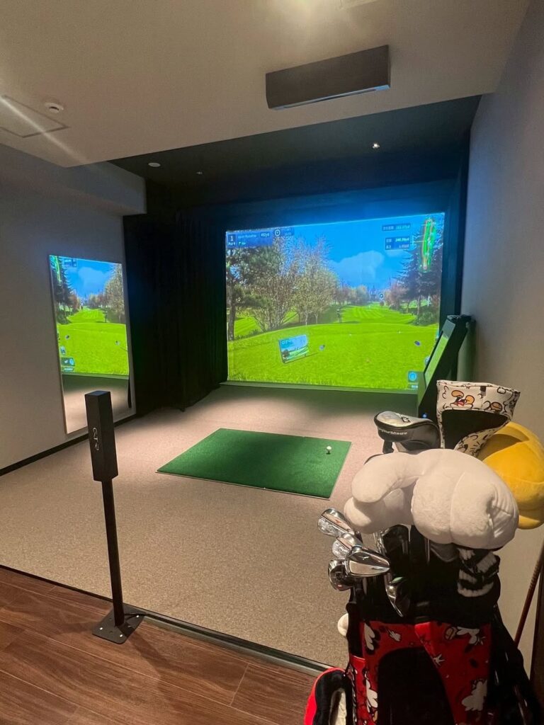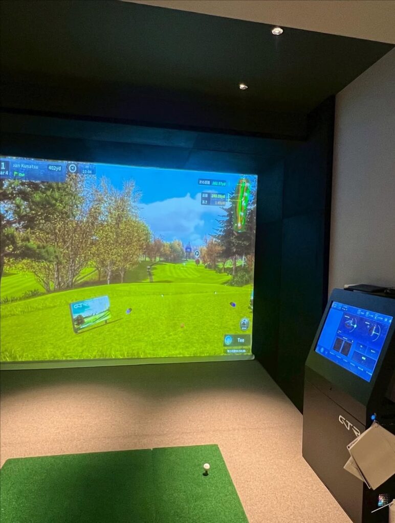 個室シミュレーションゴルフルーム は、広々とした空間で人目を気にせずプレー。