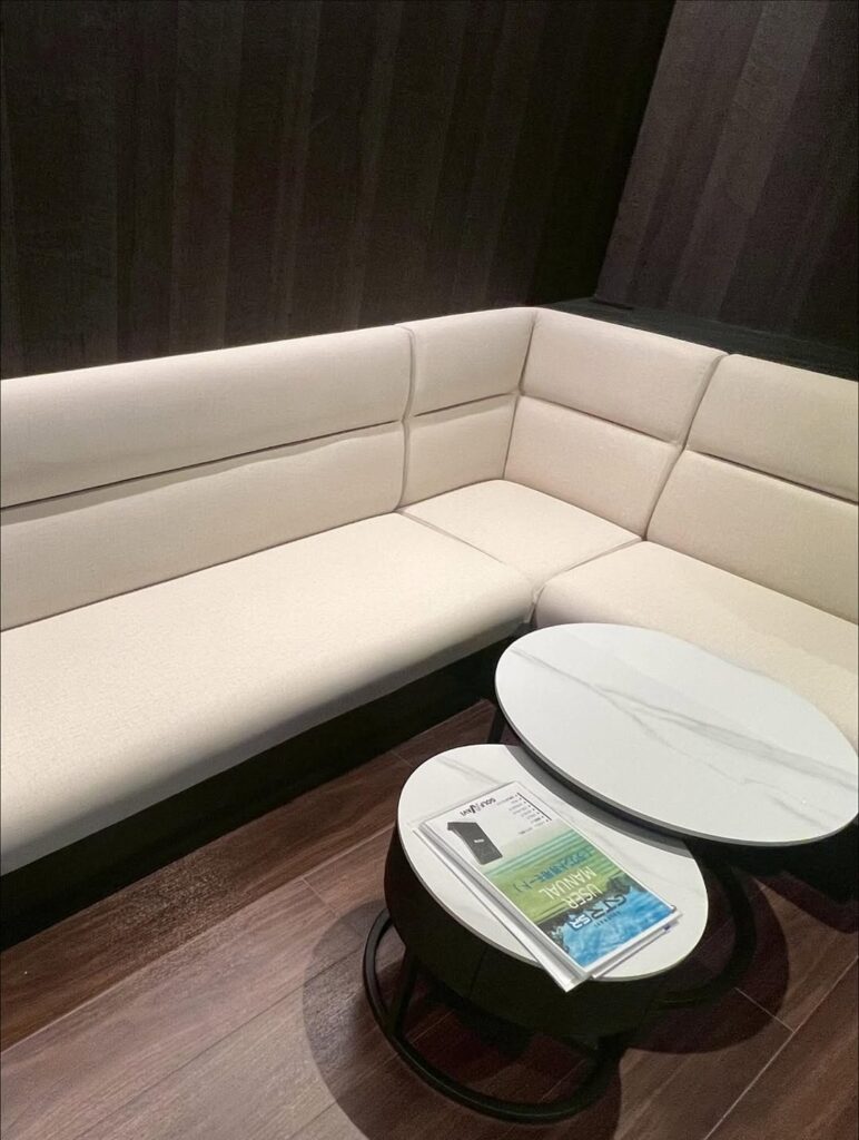 後方のソファで仲間や家族とくつろぎながら、本格的なラウンドや練習が楽しめます。