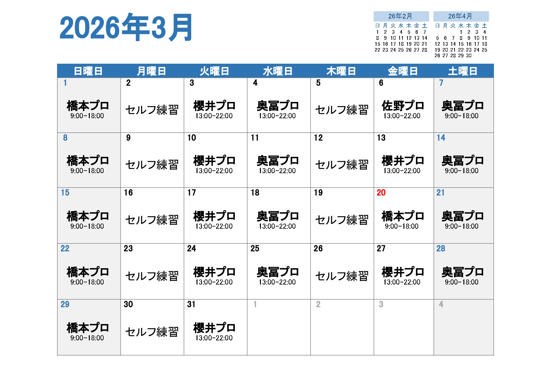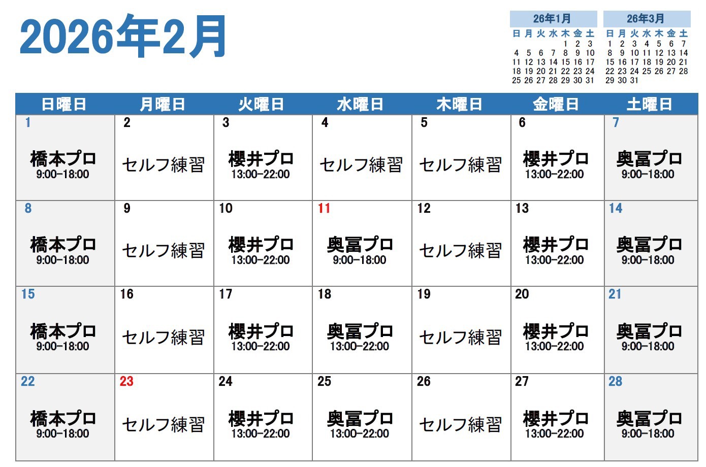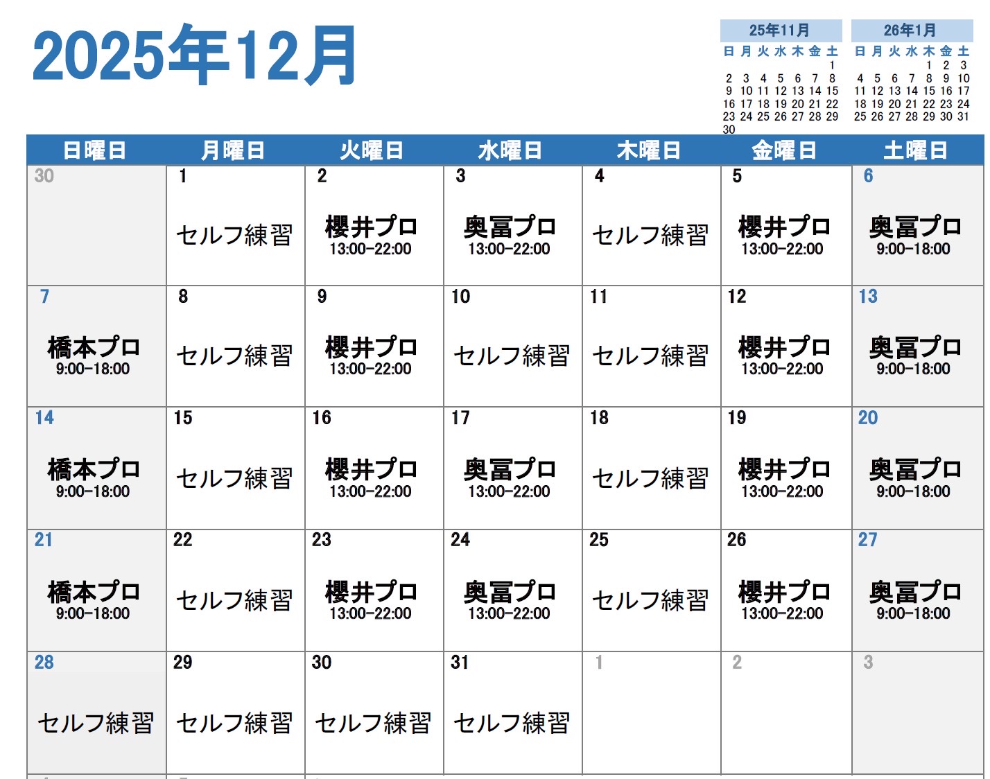 | 営業時間 | 5:00〜23:00(無休) レッスンアワー: