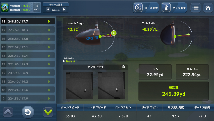 高性能センサーがショットデータを正確に計測。リアルなコース体験やフォーム改善に役立ちます。